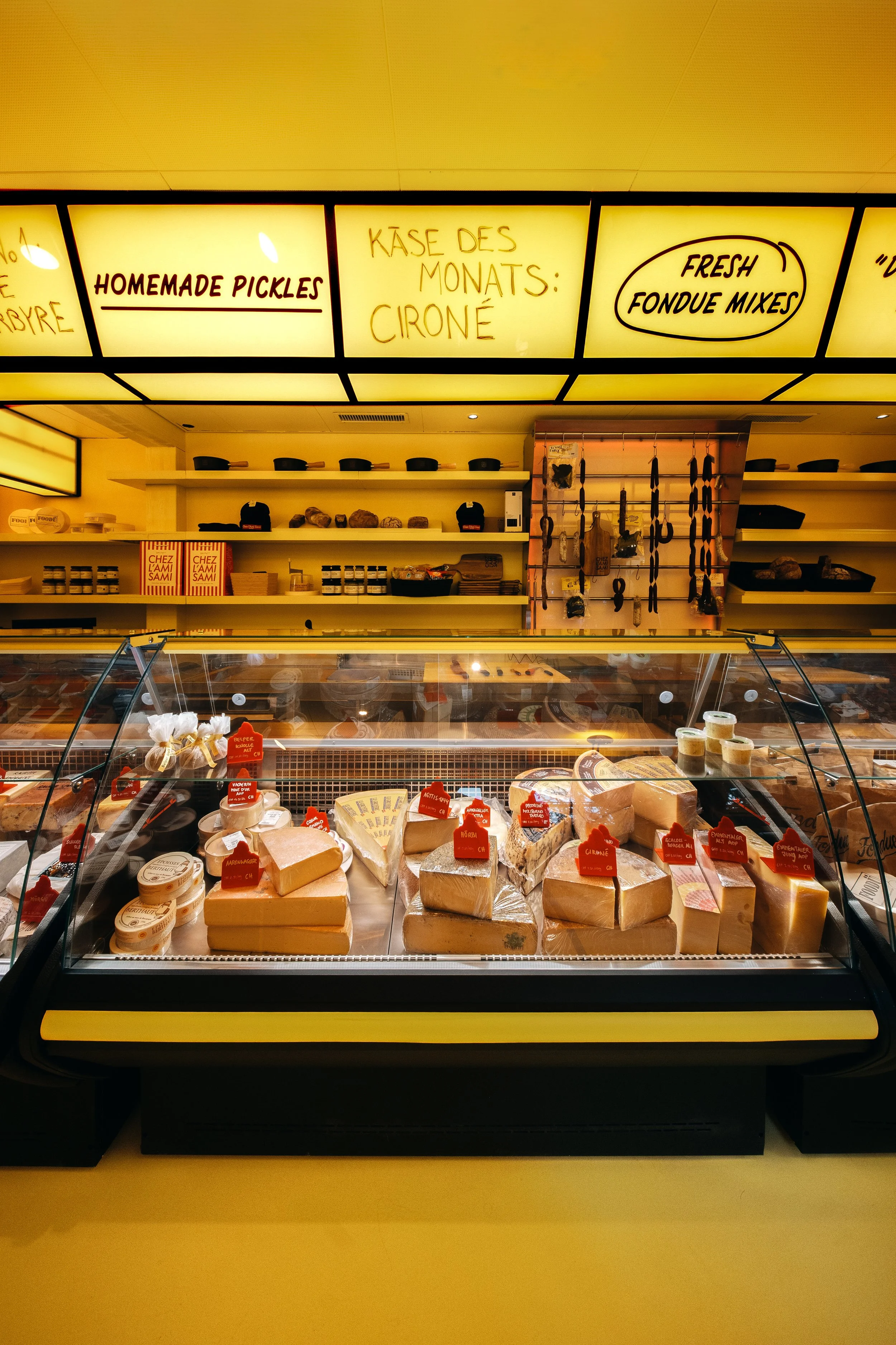 Inside, guests experienced a Swiss-focused cuisine restaurant, a cheese store offering all the ingredients for a perfect cheesy night at home, and hidden behind the large cheese fridges, our HiFi bar with great music and carefully crafted drinks.